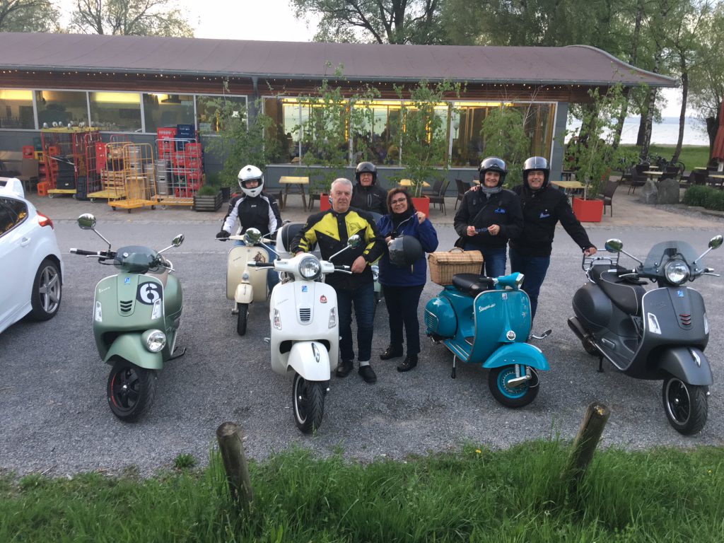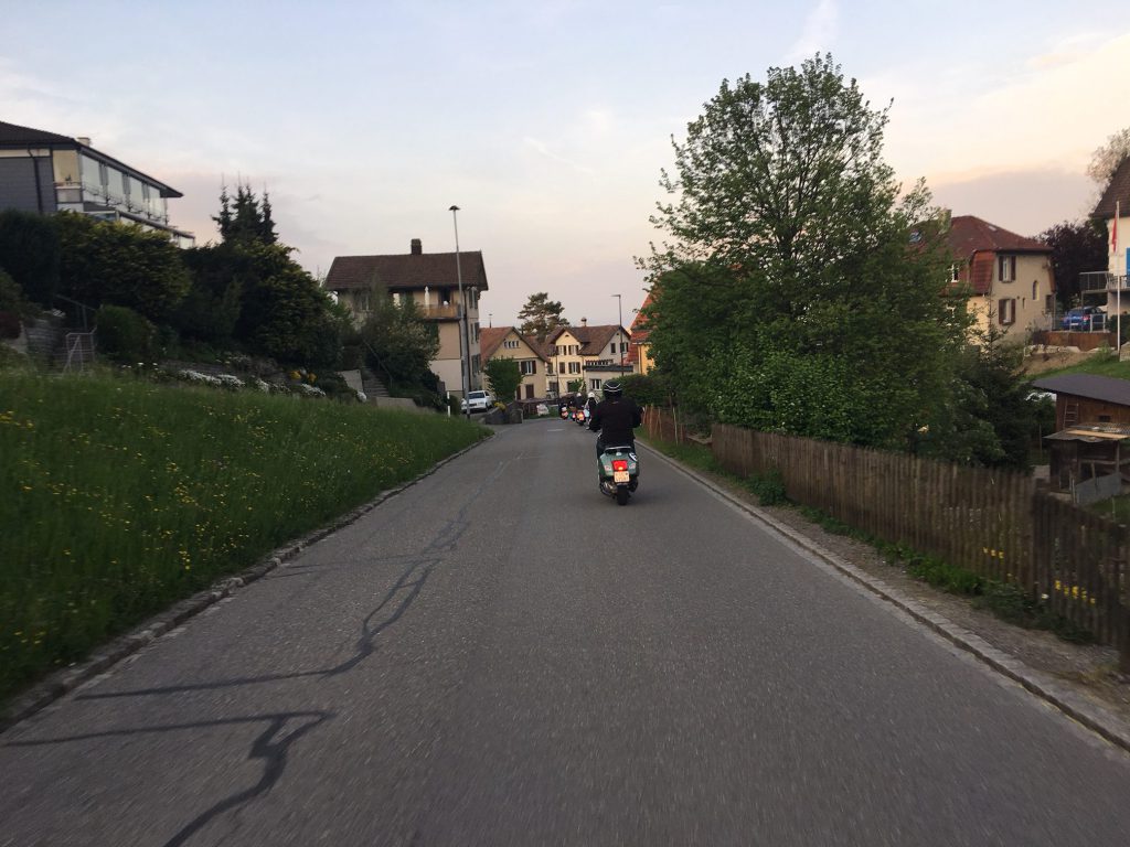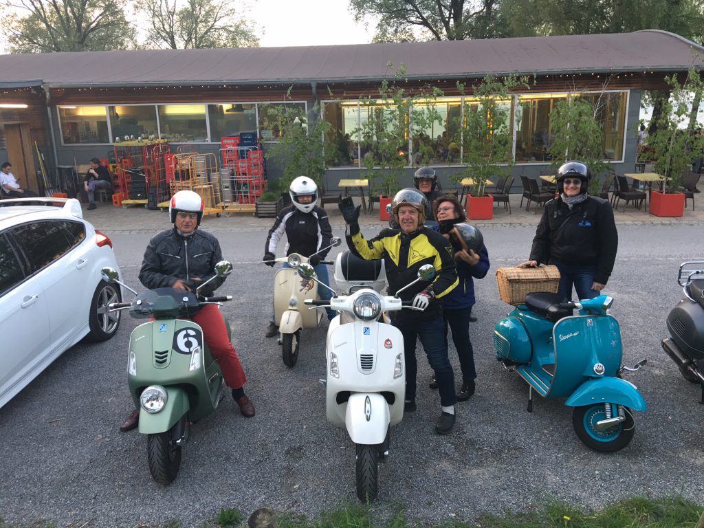 Migg, Donat und Silke, Fritz, Emilia, Freddy und Semia, Armin mit Marina trafen sich beim Rest.Schäfli ein. Punkt 19.15 Uhr starten wir mit 6 Vespas bei etwas unsicherem Wetter nach Walzenhausen, Lachen, Wolfhalden, Heiden, Schwendi, Steig, beim St.Annaschloss vorbei, Rorschacherberg, Rheineck, Gaissau, Rorspitz mit Ziel Glashaus wo wir uns mit diversen feinen Getränken und Speisen wieder stärkten. Es wurde über die geplante und auf 2 Tage verkürzte Ausfahrt diskutiert. Zirka um 22.15 Uhr fuhren wir dann nach Hause.