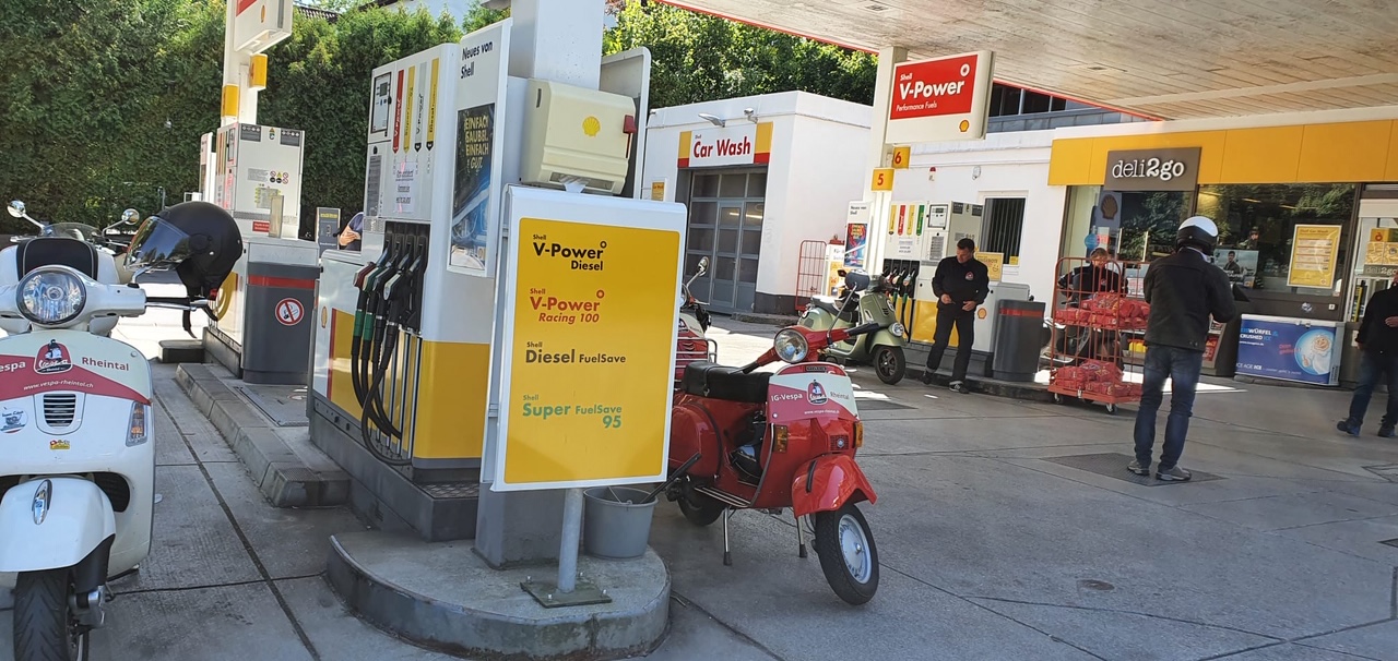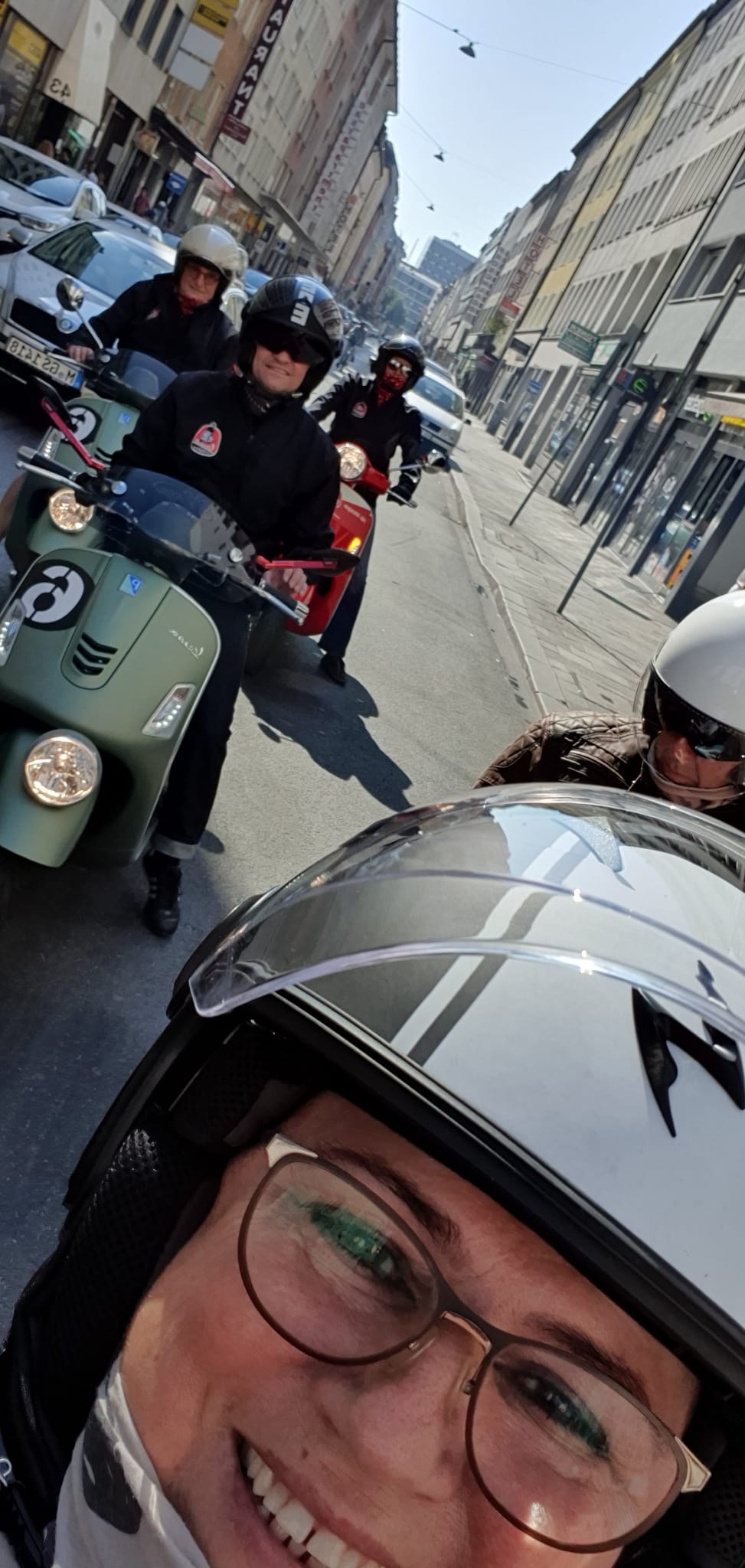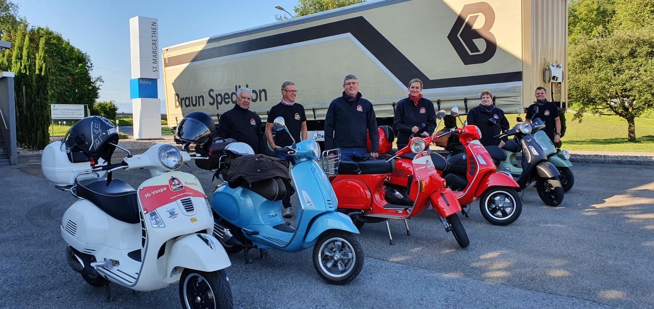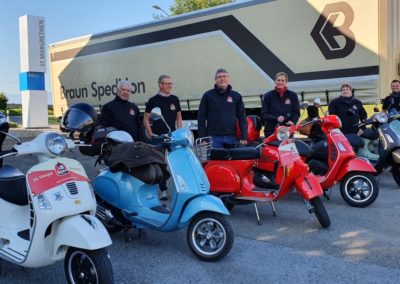 Die Vespistis Donat, Silke, Karin, Jörg, Freddy, Semia, Marcel und Fritz der IG Vespa liessen sich diese Fernfahrt nicht nehmen.