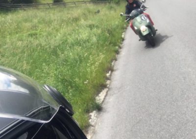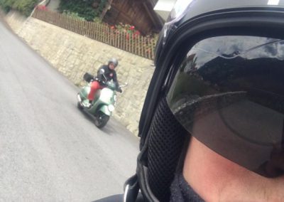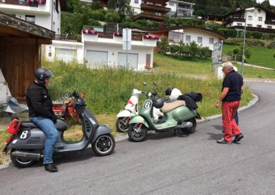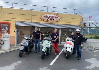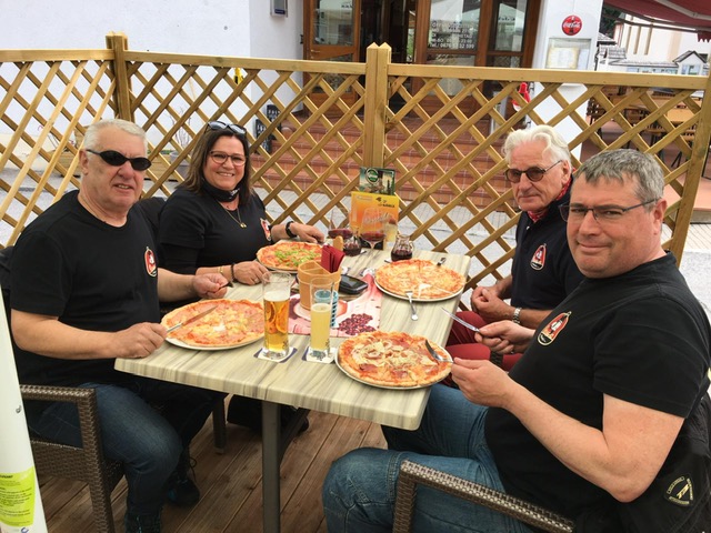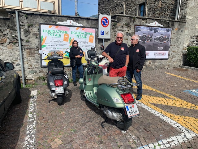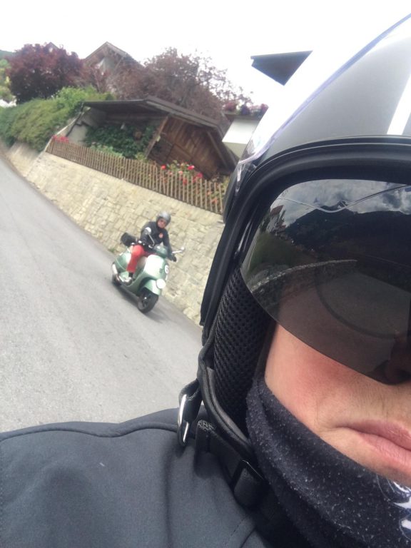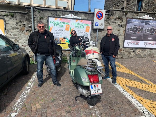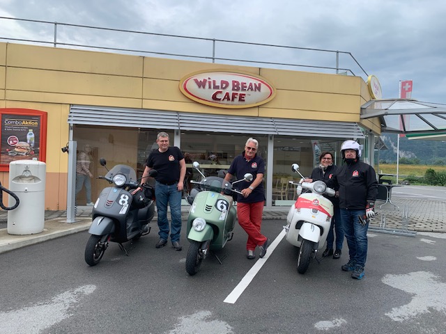 Eigentlich hätten wir vom Wetter her nicht fahren dürfen, aber die harten Typen von der IG-Vespa Donat, Freddy, Semia und Fritz liessen sich das Abenteuer nicht entgehen. Schon bei der Begrüssung in Kriessern sind schwarze Wolken aufgezogen. Das verhiess nichts Gutes! Desto Trotz: Wir werden fahren!!