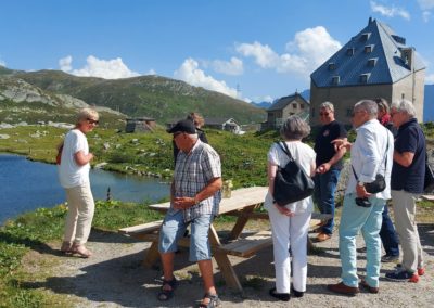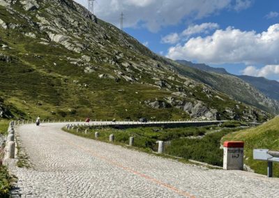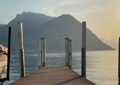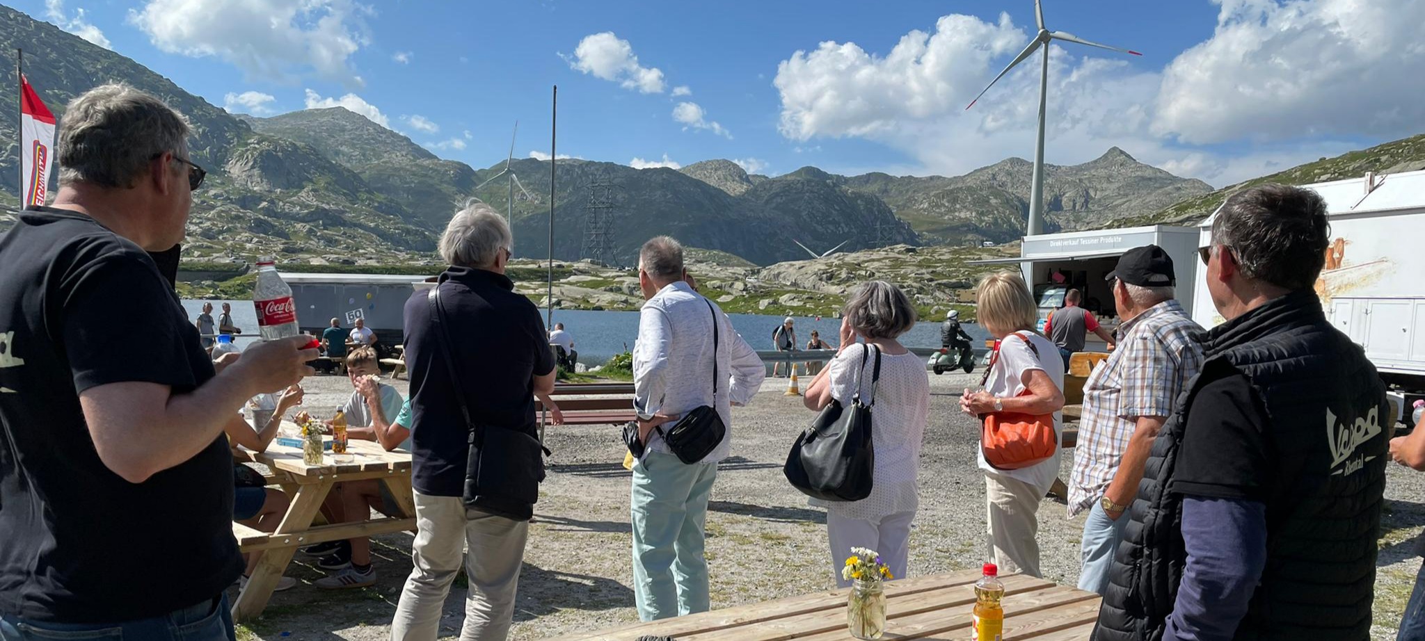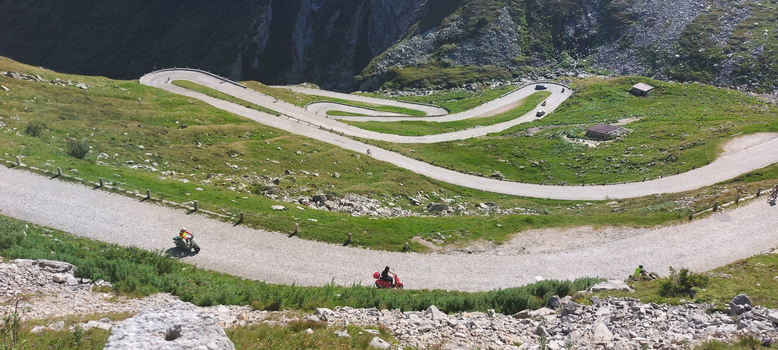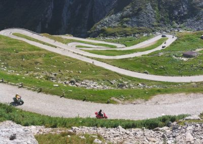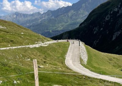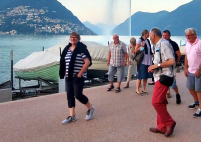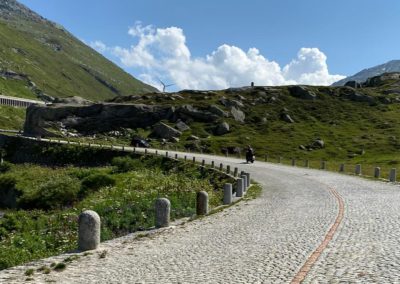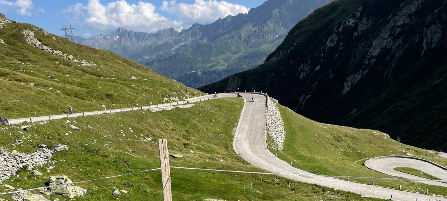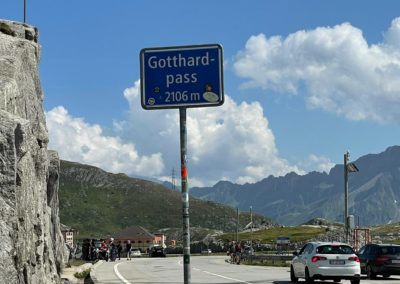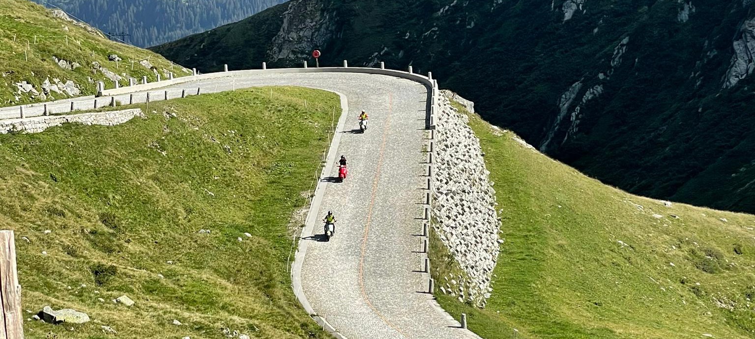 Nach dem Essen schwangen wir uns wieder auf den Sattel und vor uns lag der Höhepunkt dieser Fahrt der Gotthard. Zuvor fuhren wir dem Vierwaldstättersee entlang, und dann ging es hinauf nach Andermatt. Die steile und kurvenreiche Strasse führte uns zur Passhöhe auf 2100 m.ü.M. Wir standen nun am Fusse des Gotthardmassivs und genossen die Berge bei einem Kaffee. Wieder auf der Vespa, fuhren wir die alte Gotthardstrasse (Tremola) nach Airolo hinunter. Es ging die Leventina hinab durch Bellinzona, und nach rund 290 km erreichten wir unser Ziel Lugano. Es war eine eindrückliche Fahrt, quer durch die Ostschweiz ins Tessin.