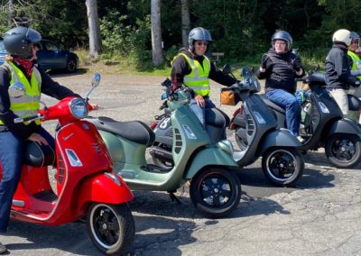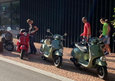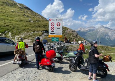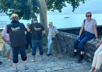 Am Sonntag nach dem Frühstück nahmen wir die Rückreise in Angriff. Sie führte uns zuerst nach Melide. Über ein enges, steiles und kurvenreiches Strässchen erreichten wir Arogno. Von dort ging es steil hinunter an den Comersee. Die Strecke am Comersee entlang durch prachtvolle kleine italienische Dörfer. Wieder war es an der Zeit einen Halt einzulegen und den italienischen Espresso und die wunderbare Atmosphäre zu geniessen. Zurück auf der Vespa ging es weiter nach Chiavenna und hinauf auf den Splügenpass. Die Reise führte uns an der Viamala Schlucht vorbei nach Thusis und weiter nach Chur. Nach einem letzten Umtrunk verabschiedeten wir uns.