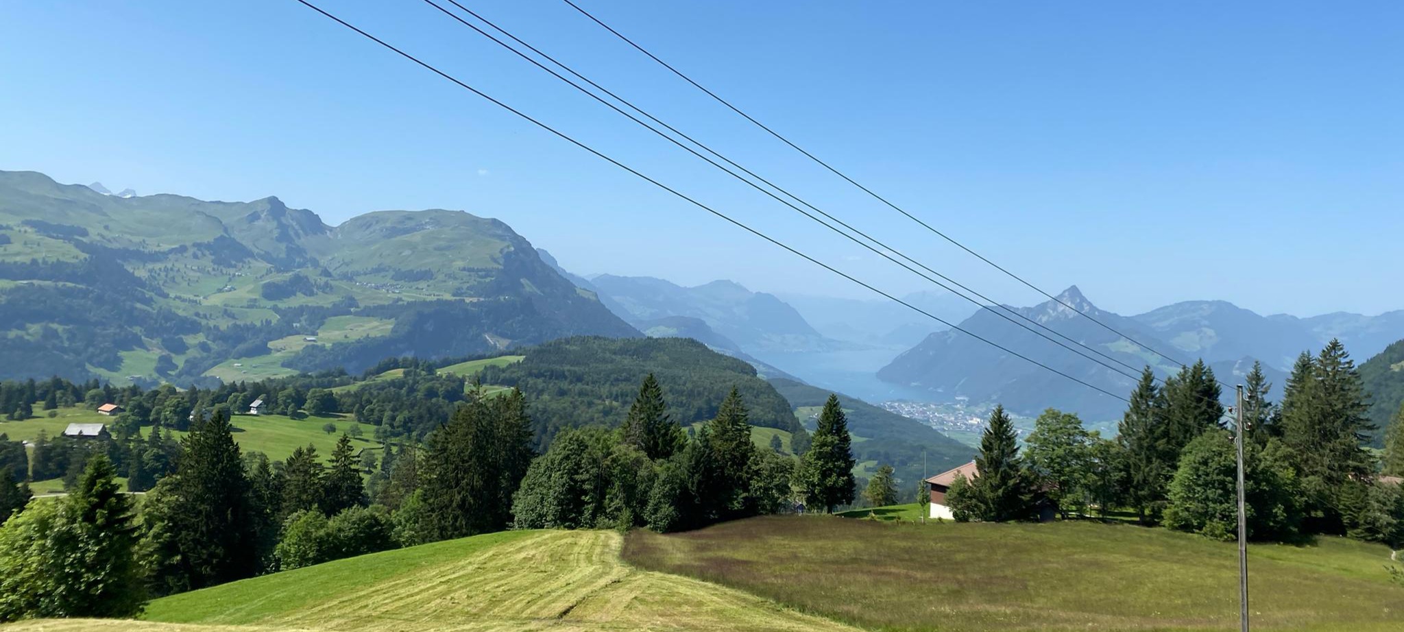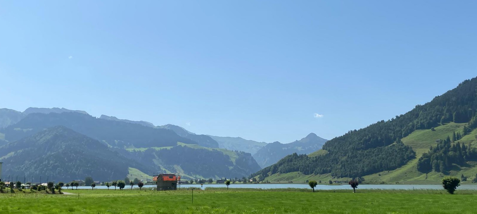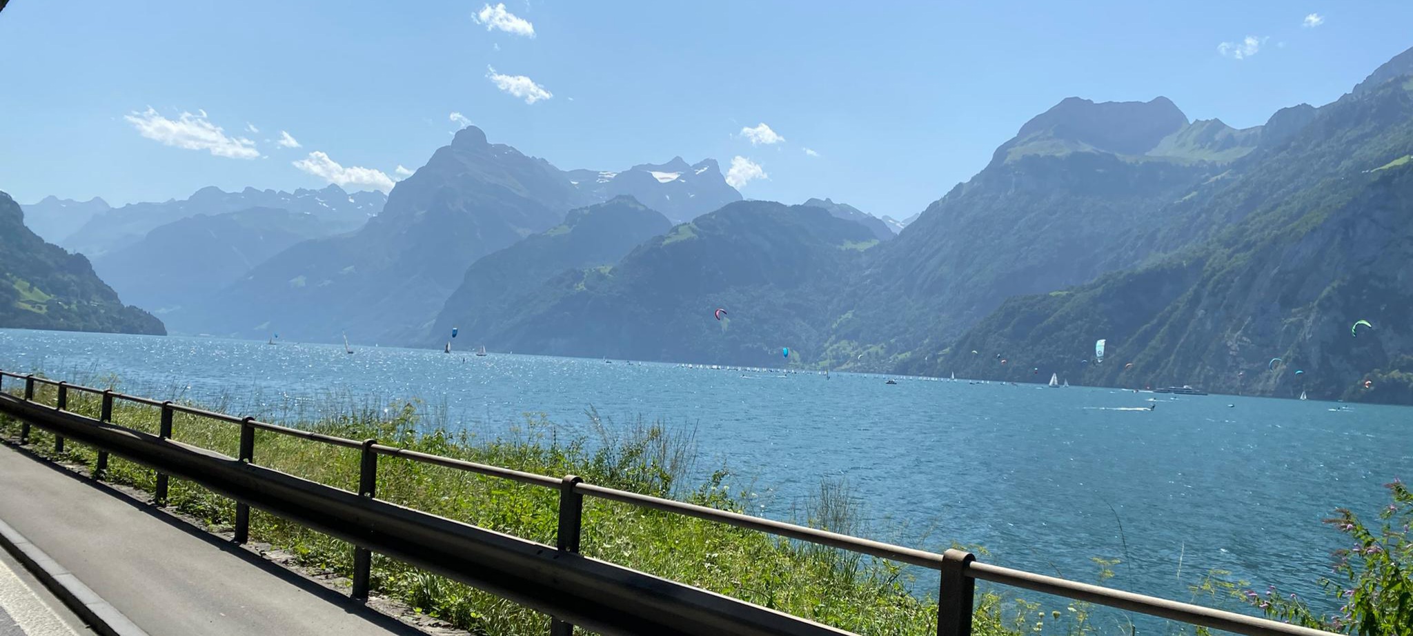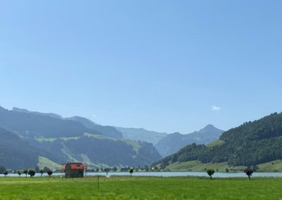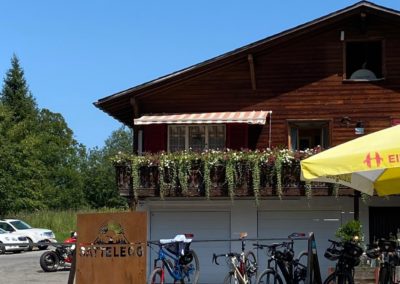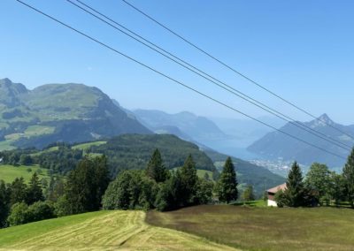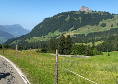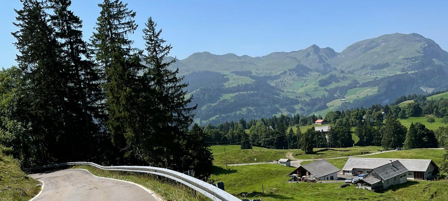 Es ging hinauf auf den Stoss nach Gais und Appenzell, Und weiter am Fusse des Kronbergs vorbei nach Urnäsch. Dort bogen wir ab auf den Hemberg. Eine schmale Strasse (eher ein Wanderweg) mitten im Grünen führte hinunter nach Ebnat Kappel, und dann hinauf auf den Ricken. Es war Zeit einen Kaffeestopp einzulegen. Nach der Stärkung fuhren wir weiter nach Uznach über den Linth-Kanal nach Siebnen. Wir durchstreiften das schöne, grüne Land Richtung Sattelegg. Wir genossen die atemberaubende Aussicht in die Berge und auf die Myten. Der Weg führte uns am Sihlsee entlang nach Oberiberg in eine wunderschöne Berglandschaft. Auf einem Kuhpfad erreichten wir Schwyz, und assen dort zu Mittag.