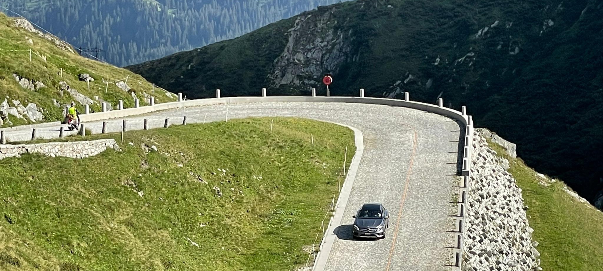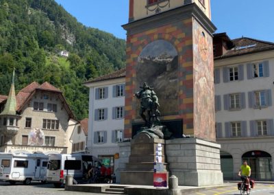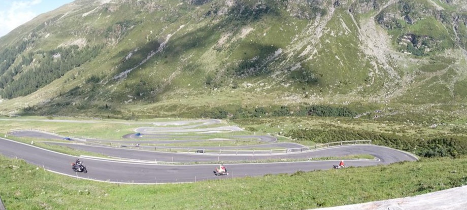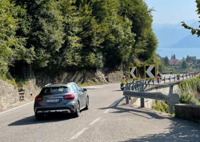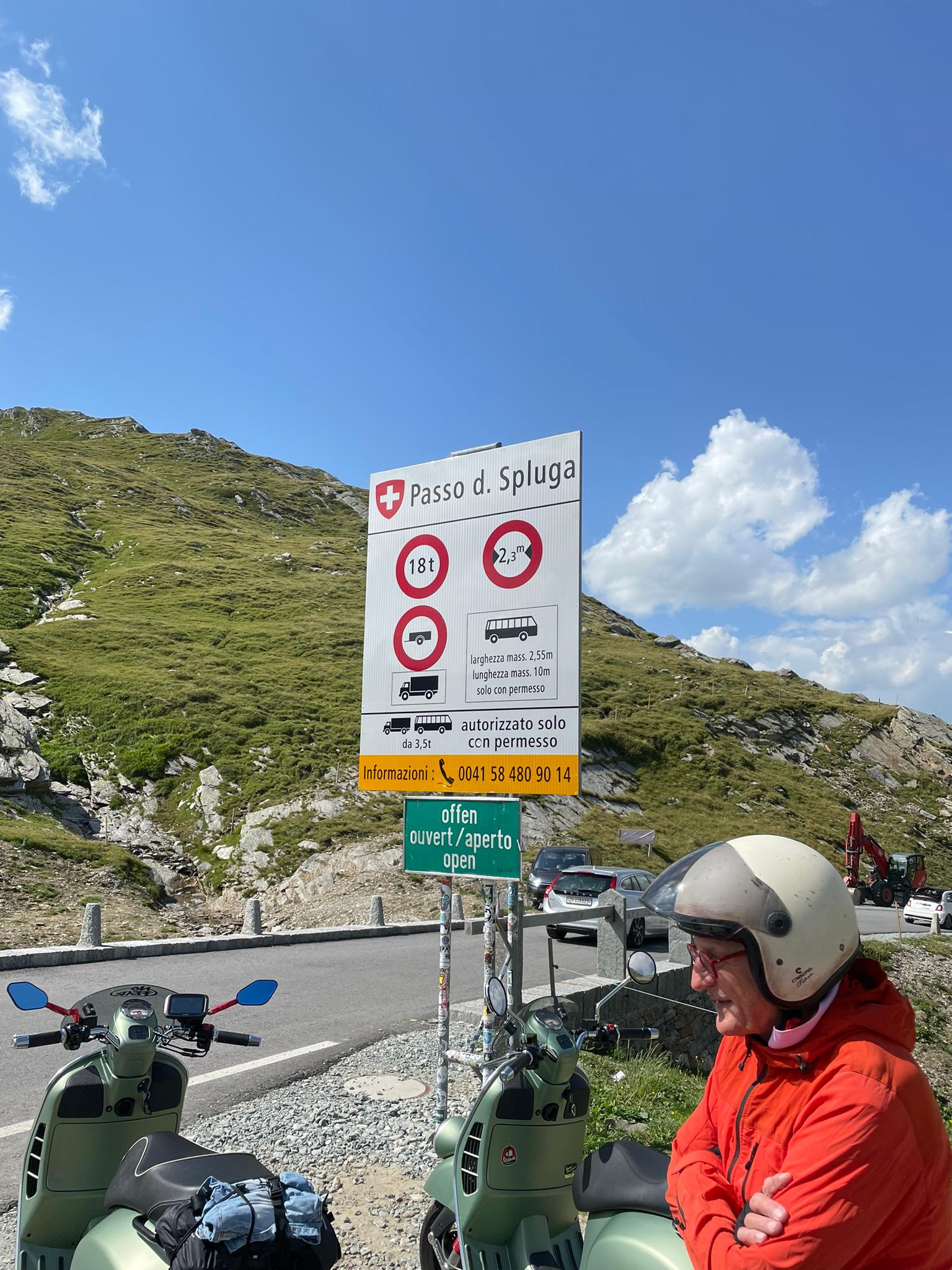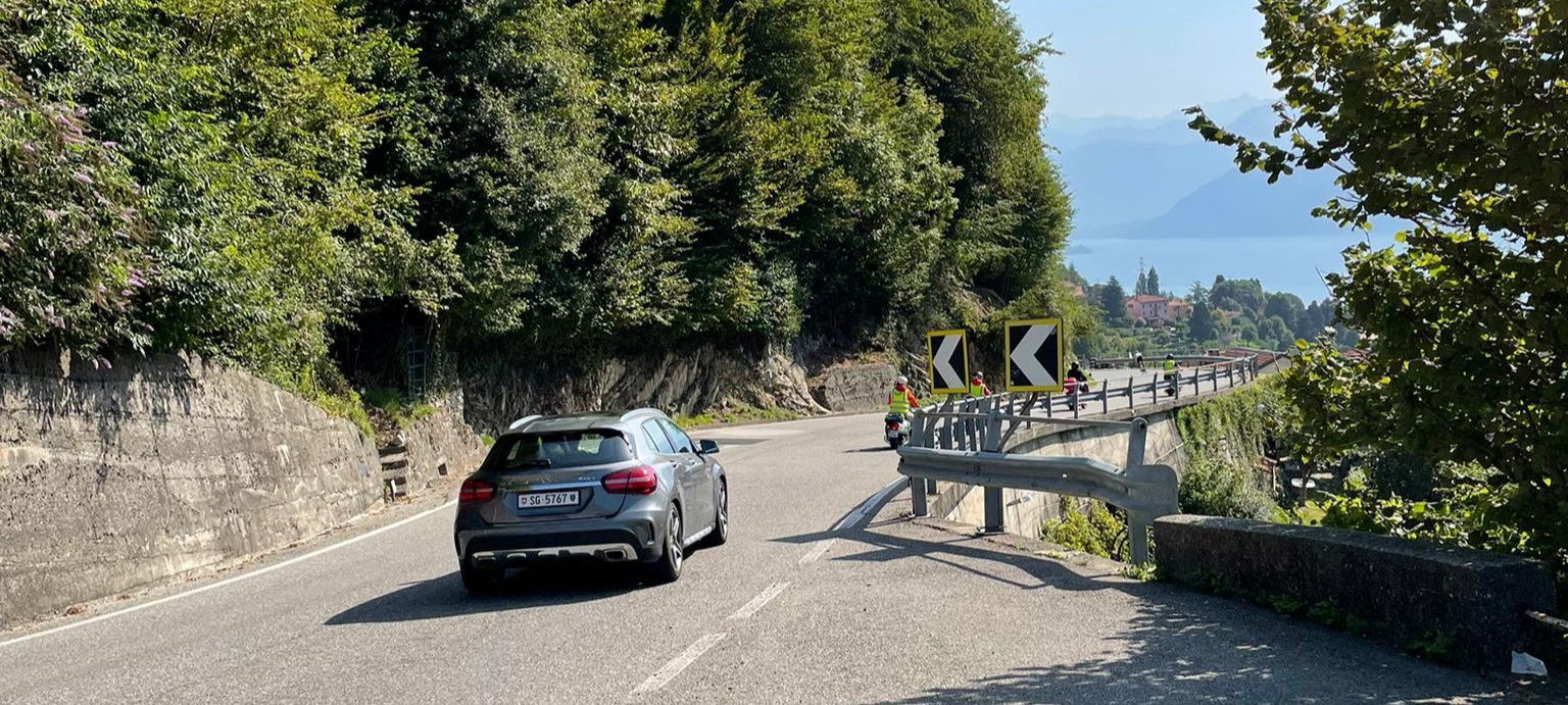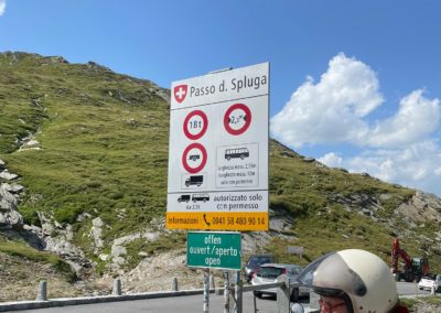Lugano, dem Comersee entlang, Tremezzo (Kaffeepause), Campodolcino (“Boxenstop”), Splügenpass, Chur (Kaffeehalt), St. Lutzisteig, Altstätten
