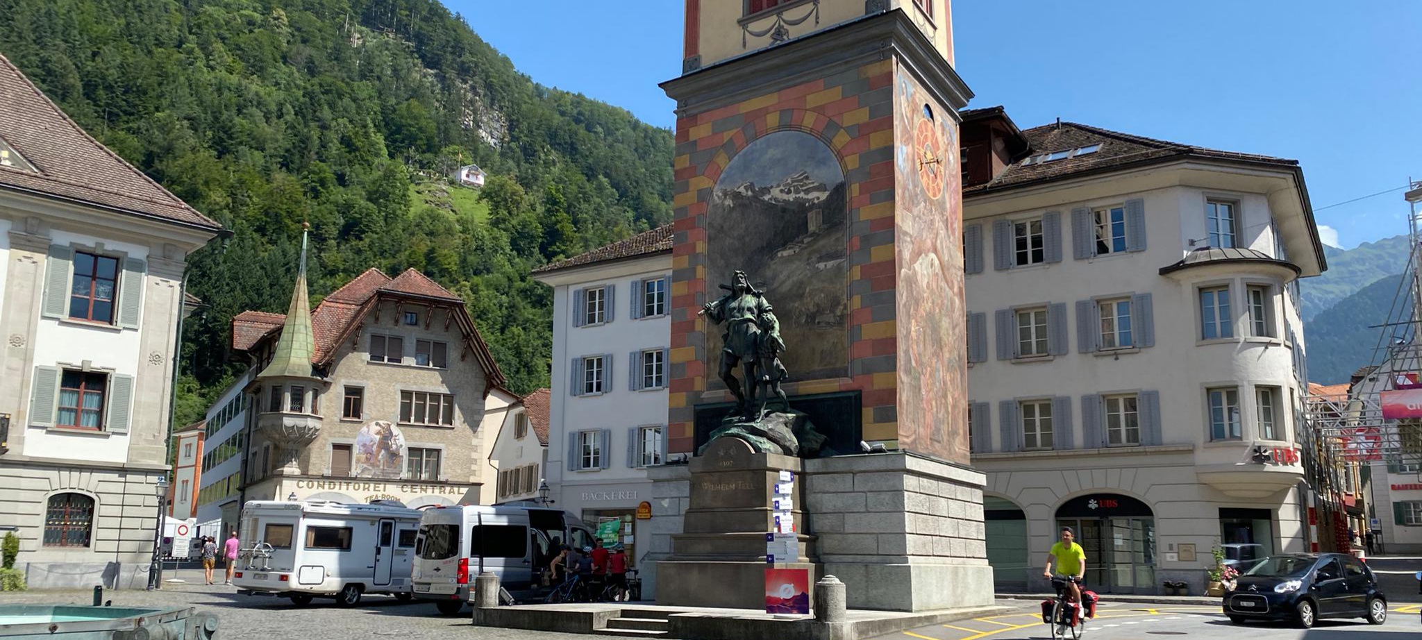 Altstätten, Stoss, Hemberg, Ricken (Kaffepause), Sattelegg, Ibergeregg, Schwyz (Mittagessen), Altdorf, Andermatt, Gotthard, via Tremola ins Tessin, Lugano (Nachtessen)