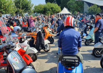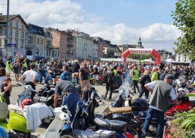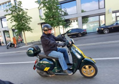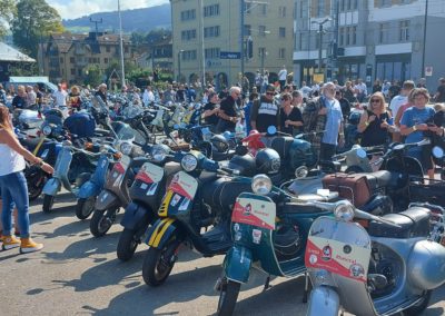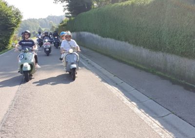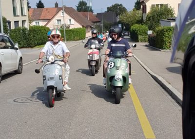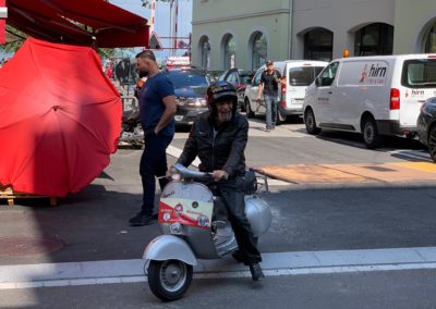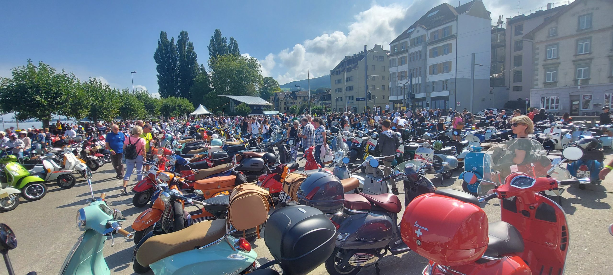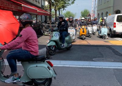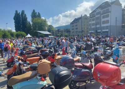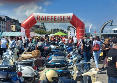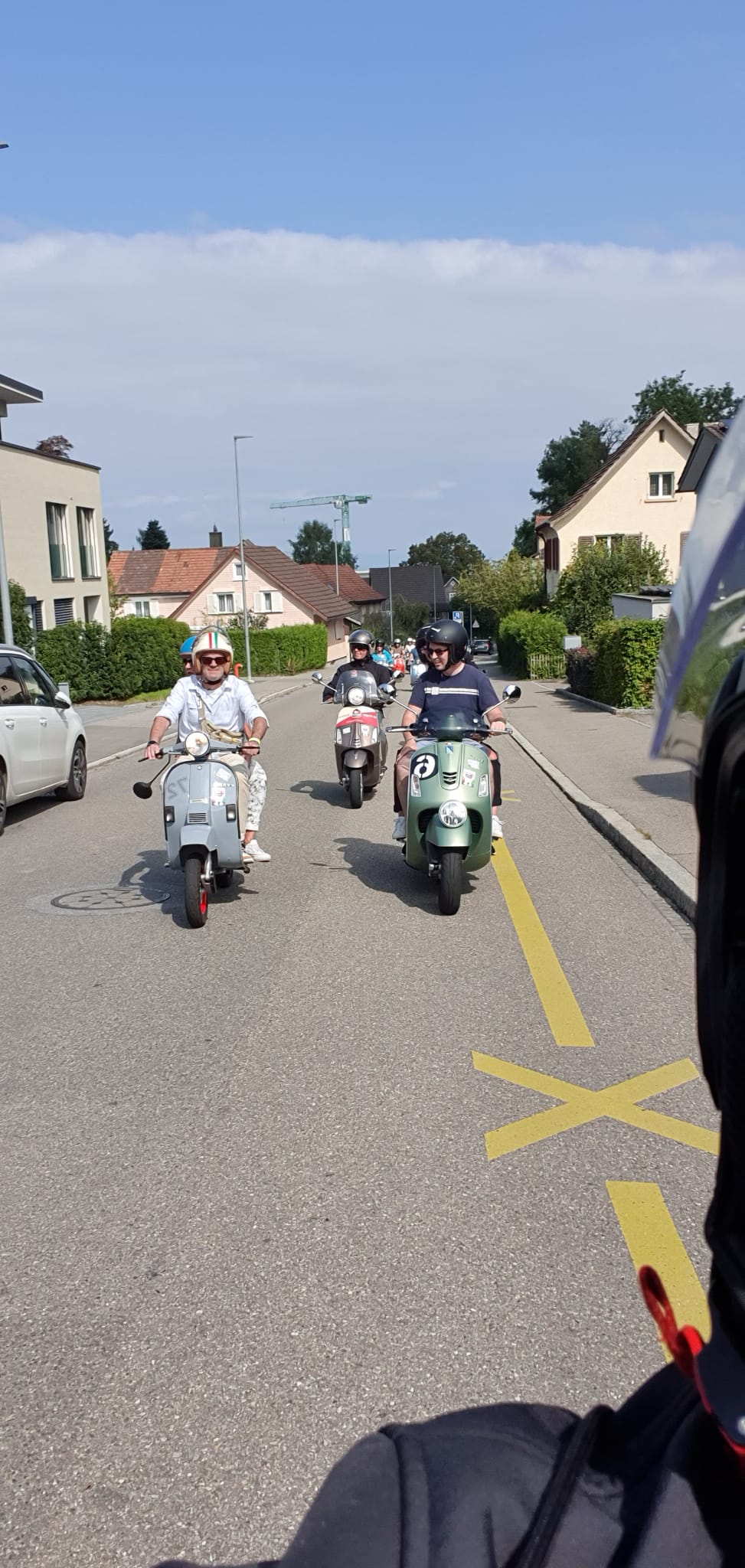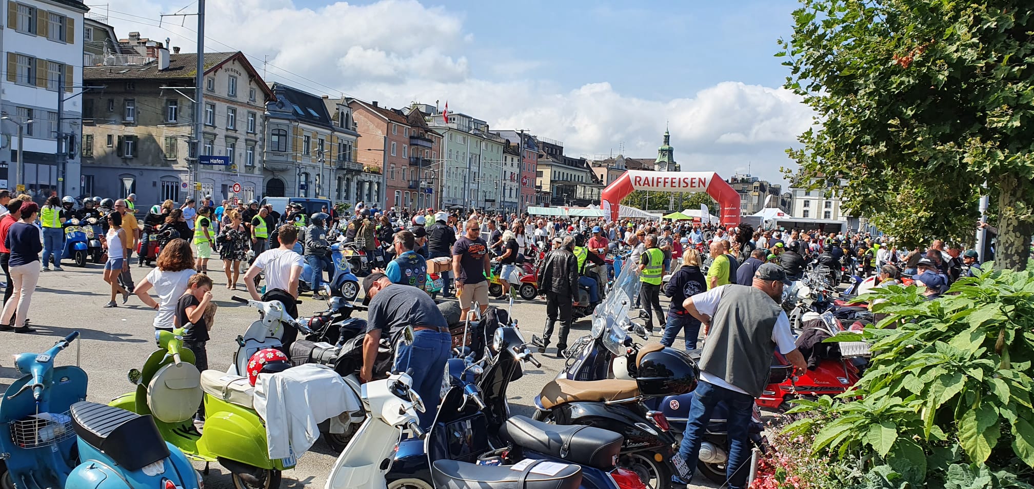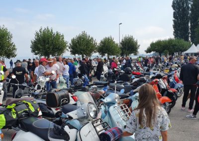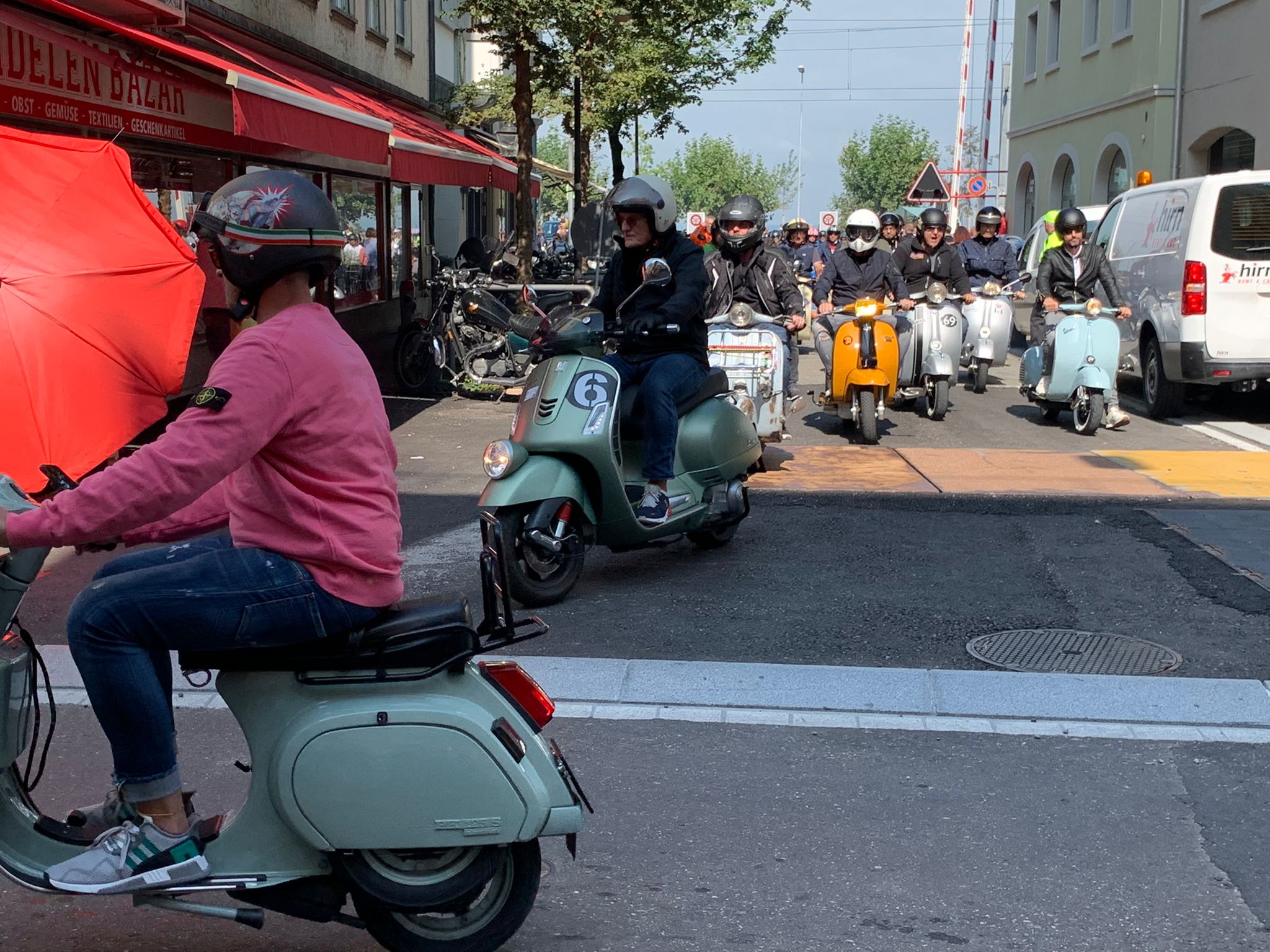 Der Treffpunkt war wie immer das Schäfli in St. Margrethen. Von dort fuhren wir unter der Führung von Donat über Thal, Rorschacherberg, Untereggen nach Rorschach. Kaum zu glauben. Über 500 Vespistis, Freunde und gleichgesinnte trafen sich am Hafenplatz. Es war ein Fest sondergleichen, eine bunt gemischte Gesellschaft aus Schweizern, Österreichern, Deutschen aber vorwiegend Italienern. Sie sorgten für ein ganz grosses Fest. Die Freundschaft und die Gemeinschaft und das Fachsimpeln über Vespas sind Tradition.